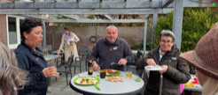 Da auch zu gleichen Zeit Gerald Hillebrand und Rosi Esser mit einer Seniorenfreizeit vor Ort waren, gab es im Cafe „biji de koster“ bei Kaffee und Kuchen ein Treffen mit einigen Mitgliedern unserer Partnergemeinde.